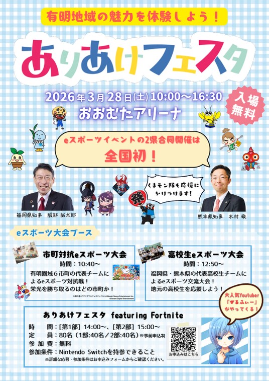 福岡県と熊本県の合同開催となるeスポーツイベント「ありあけフェスタ」を開催します。