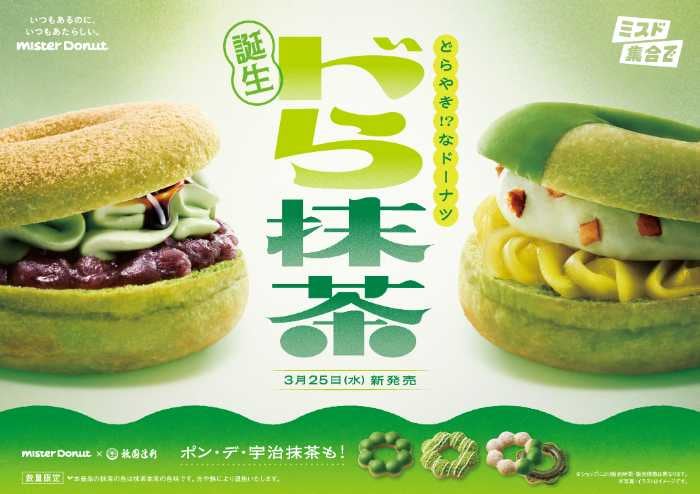 春になると楽しみになる、ミスタードーナツの宇治抹茶シリーズが今年も登場♡祇園辻利の宇治抹茶を使用した本格的な味わいに加え、今年は“どらやき風”の新作ドーナツも仲間入り。ふわむち&もちもち食感と和素材の組み合わせで、贅沢なひとときを楽しめるラインアップです。抹茶好きさんはもちろん、和スイーツ好きにも見逃せない内容になっています♪