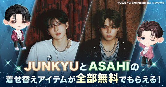 期間限定で開催するログインボーナスとスペシャルクエストをクリアすることで、「JUNKYU」「ASAHI」ふたりの魅力を再現したアバターアイテムをすべて無料で獲得することができます。