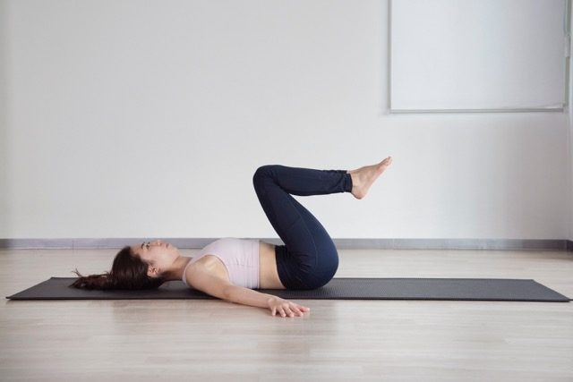 (2)両ひざをお腹に近づける
