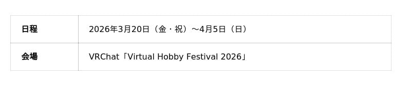 バーチャルホビーフェス2026公式サイト:https://vr-hobbyfes.jp/