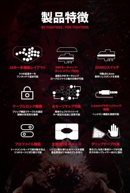 次世代の格闘ゲームデバイスメーカーとして、より高品質で優れたコントローラーを開発し、プレイヤーにワンランク上のゲーム体験を提供することを目指しています。