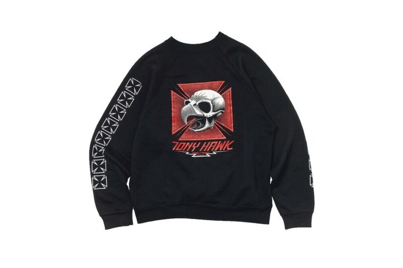 アーカイブからは、さまざまなカルチャーとの深いつながりが見えてくる。アメコミ『バットマン』のスウェットもそのひとつだ。そして忘れてはならないのがスケートカルチャー。80年代初頭、トニー・ホークの初期モデルのボディにも「ディスカス」が採用されていた事実が、その深さを物語る。