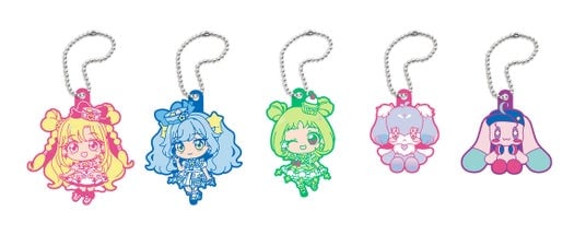 本商品は、デフォルメされたキャラクター達がデザインされた、ボールチェーン付のラバーマスコットで、ラインアップは「いのり」「あおい」「ぐみ」 「フォーチュ」 「MCプリうさ」の全5種類となります。5月には同シリーズの第2弾も発売予定しています。