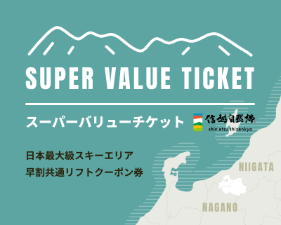 信越自然郷スーパーバリューチケットは、長野・新潟エリアの22スキー場で使えるお得なリフト1日券セット。対象は飯山・中野・山ノ内・信濃・飯綱・木島平・野沢温泉・栄・妙高の9市町村に広がり、温泉入浴券や食事券など特典も満載。5枚つづりで、一人でも家族や仲間とシェアしても楽しめる便利なクーポンだ。