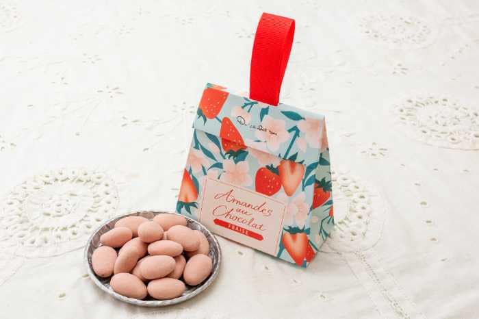 アーモンドをホワイトチョコで包み、あまおうパウダーをまぶしたチョコレート。ナッツの食感がアクセントです。