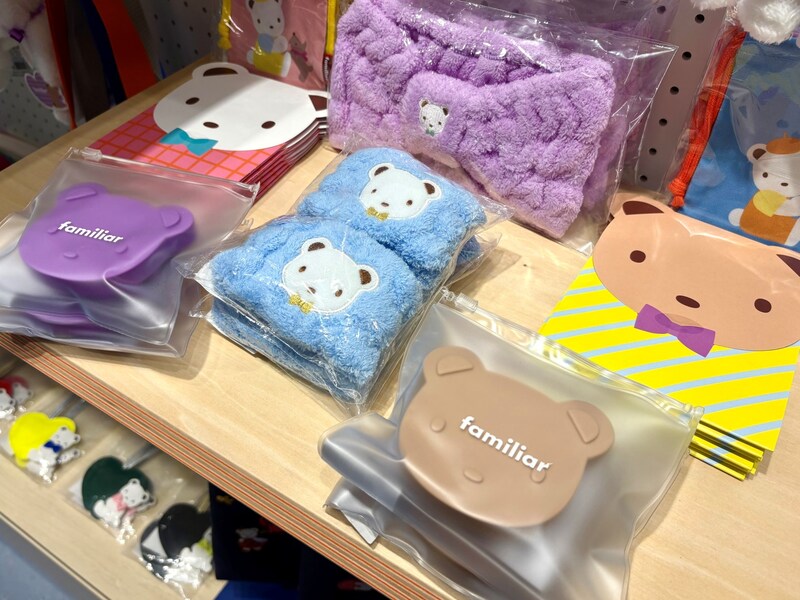 そのほか、定番の“ファミリアチェック”柄のアイテムに多彩なミニタオルハンカチ、日々のケアの際に欠かせないスカルプブラシやアームバンドといった、思わずプレゼントしたくなるアイテムがズラリと並びます。