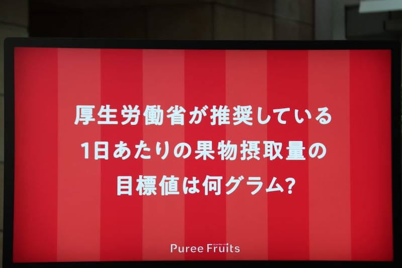 「さきほど(司会の方が)、ピュレフルーツは1日の摂取量の半分を摂れるって言ってたので、これくらいかなと予想しました。」