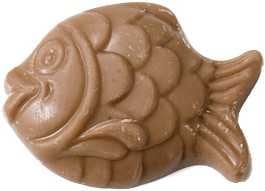 ヌガティーヌ入りプラリネをイワシ型ビターチョコレートでコーティング。