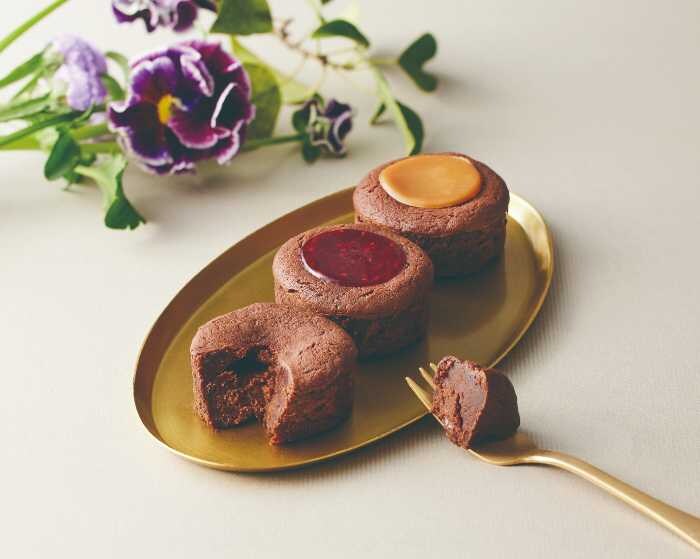 しっとり生地の中に濃厚ガナッシュを閉じ込めた贅沢な一品。「ビター」「フランボワーズ」「キャラメル」の3種類を展開。温めることでとろける食感も楽しめます。