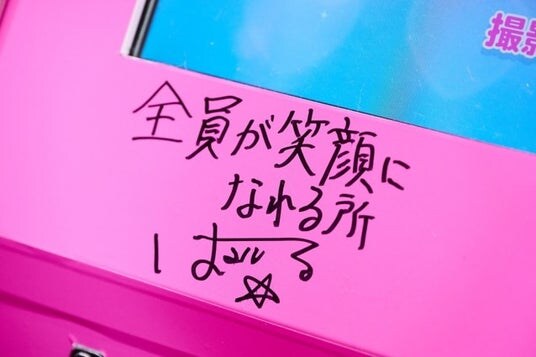 超“プリ” エンジョイオフィサーとして、「平成プリパニック」の画像送信ブースにプリ愛メッセージを書き込み