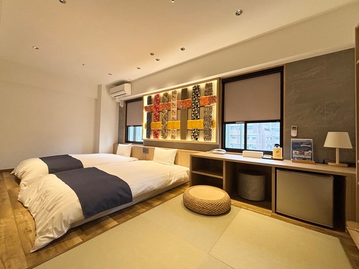 壁には和の煌びやかなインテリア、くつろぎのスペースは畳張りになっており、ホテルに居ながら、高級旅館へ来たような落ち着いた雰囲気。