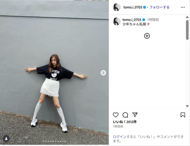 この投稿にファンからは、「私服、かわいい!」「美人過ぎてやばい」「可愛いともちんにウインクされたドキドキ」「どんな服装も着こなすともちん流石です」など絶賛の声が寄せられている。