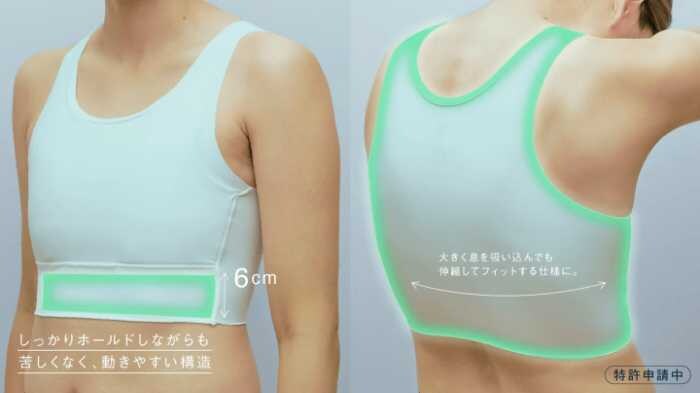 胸の揺れを抑えながら、呼吸のしやすさや動きやすさにもこだわったOPTの「ゆれないスポーツバインダー」。