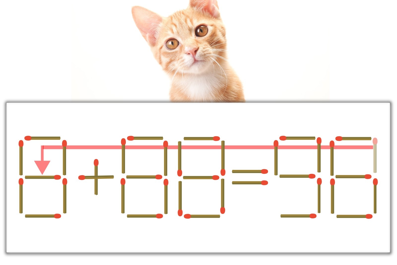 【問題】マッチ棒を1本動かして式を正しくしてください。