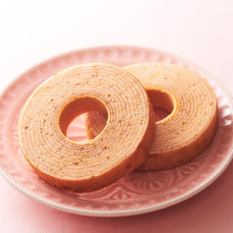 桜の風味を取り入れた、春限定のバウムクーヘンです。ドイツの伝統製法をベースに、何層にも丁寧に焼き重ねた生地はしっとりとした食感。桜の香りをほんのりと加え、上品な味わいに仕上げています。