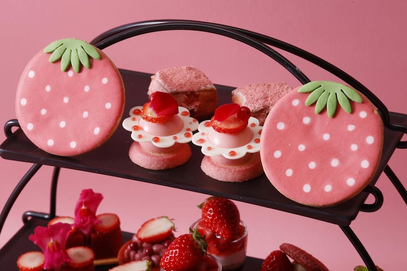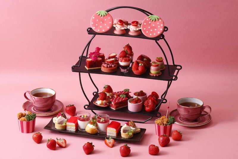 旬のいちごを使ったスイーツがずらりと並び、見た目の華やかさや可愛さも魅力的な春のアフタヌーンティー。
