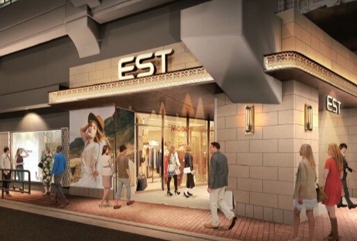 “エストピンク”が印象的だったこれまでの正面エントランス(西側外壁ファサード)から、2026年3月18日(水)に装いを一新! “FAN&CHARM(=楽しさ&魅力)”をコンセプトに、ファッションを通じて自分らしさを表現し、楽しむ女性をターゲットにした、新しい「エスト」へと生まれ変わりました。