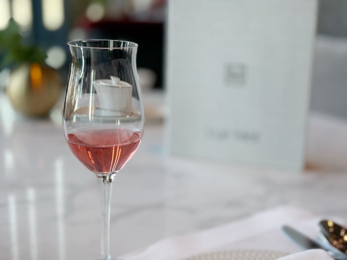 春を彩るひとときは、桜が香るコーディアルと、ノンアルコールのスパークリングワインを合わせた、華やかなウェルカムドリンクでスタート。