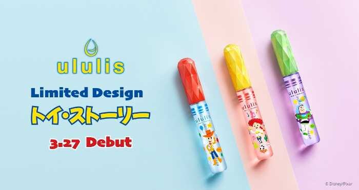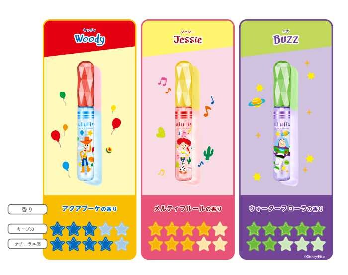 「ウルリスウォーターインマトメイク」は、トイ・ストーリーの人気キャラクターをあしらった3種類を展開。各10mL、価格は1,078円(税込)です。
