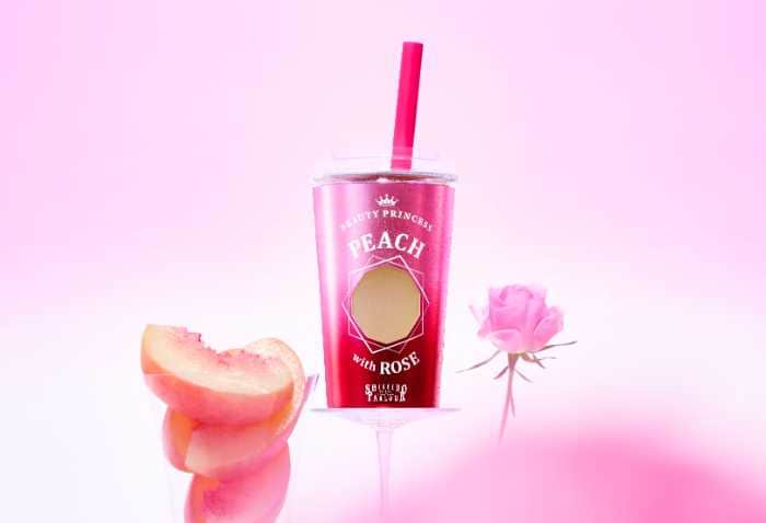 「ピーチwithローズ」は長野県産ピーチピューレの甘酸っぱさにローズの優雅な香りをプラスし、果肉の食感も楽しめます。