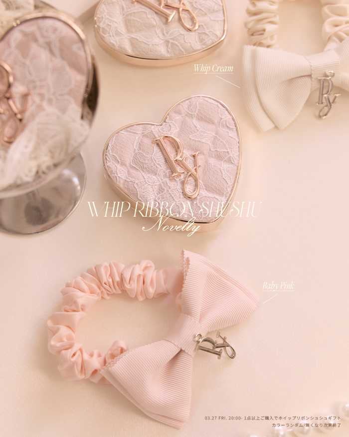 さらに、3月27日20:00以降に商品を1点以上購入すると、先着で「WHIP RIBBON SHUSHU」がプレゼントされます(カラーは2色からランダム)。