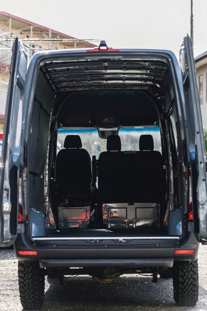 L2H2ボディサイズで車高2.635㎜に対して、荷室の室内高は193㎜。天井は鉄が剥き出しの状態であるが、板張りをするなどのカスタムも可能となっている。この車両はあえてオリジナルのスケルトン仕様にしている。