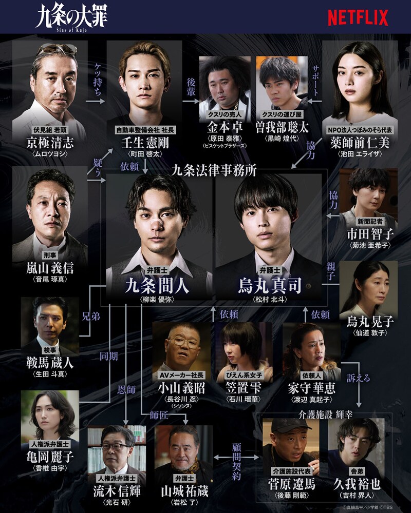 主演を務めるのは柳楽優弥。九条法律事務所で厄介でグレーな案件ばかりを引き受ける弁護士・九条間人を演じる。その九条の元で働くことになった優秀なエリート弁護士・烏丸真司を演じるのは松村北斗。犯罪者を見守るソーシャルワーカーの薬師前仁美を池田エライザ、裏社会と繋がり九条に厄介な依頼を持ち込む壬生憲剛を町田啓太、ある過去から九条と壬生を目の敵にする嵐山刑事を音尾琢真、伏見組の若頭・京極清志をムロツヨシが演じる。
