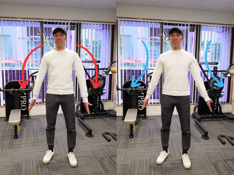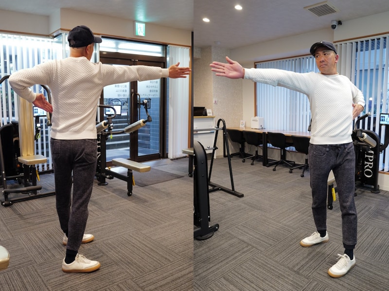 腕を横に伸ばした状態で手のひらを上に向け、内周り