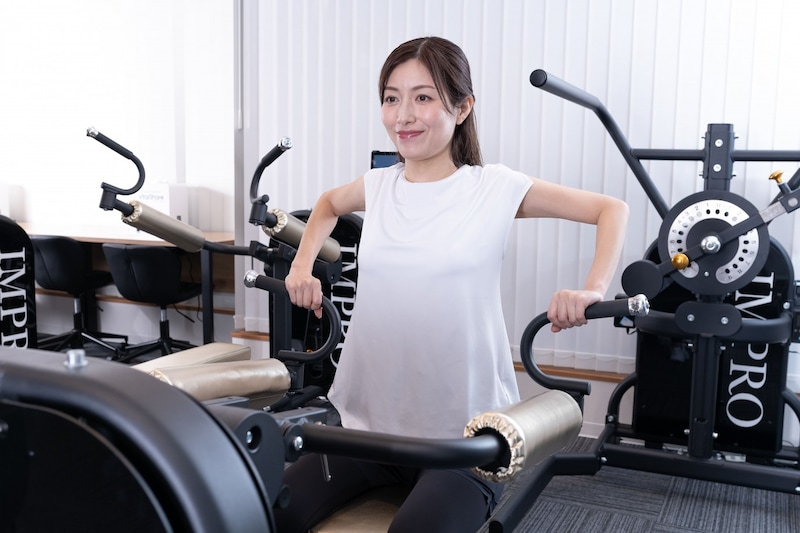 IMPROの場合は指一本で動かせるほどの軽さなので、体に抵抗をかけずに動かすことができます。完全に脱力した状態で体を動かすと、体の緊張がゆるんだように感じ、動きがなめらかになったと体感する方も多いです。低負荷で息が上がりにくく汗もかきにくい運動なので、着替えや運動用のシューズも不要で、女性であれば髪型やメイクが崩れにくく、仕事や外出の合間にも取り入れやすいことも特徴です。