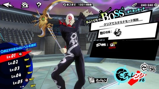 歪みレベルに応じた強大なボスを撃破し、主人公の専用武器などと交換可能な「喚喜のメダル」や、「出目指定サイコロ」を集めましょう。また、撃破済みのレベルには“スタミナモード”が解放されます。“スタミナモード”は体力を消費しての挑戦が可能で、撃破すると「『反逆』のコイン・異」などの報酬が獲得できます。