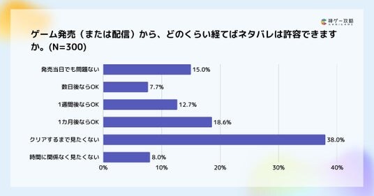 ・ネタバレが許容されるタイミングは「クリアするまで見たくない」が38%で最多