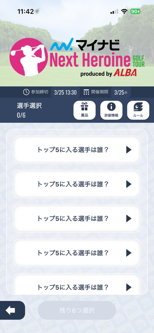 スポーツ予想アプリ「なんドラ」では、若手女子ゴルファーの登竜門となる『マイナビ ネクストヒロインゴルフツアー』と出場選手たちを盛り上げるべく、開幕戦に続き、3月24日(火)~25日(水)に行われる『第2戦 丸山木材ホールディングス 110th Anniversary meet tree × KISS ON THE GREEN Cup』の独自の予想企画を開催しています!