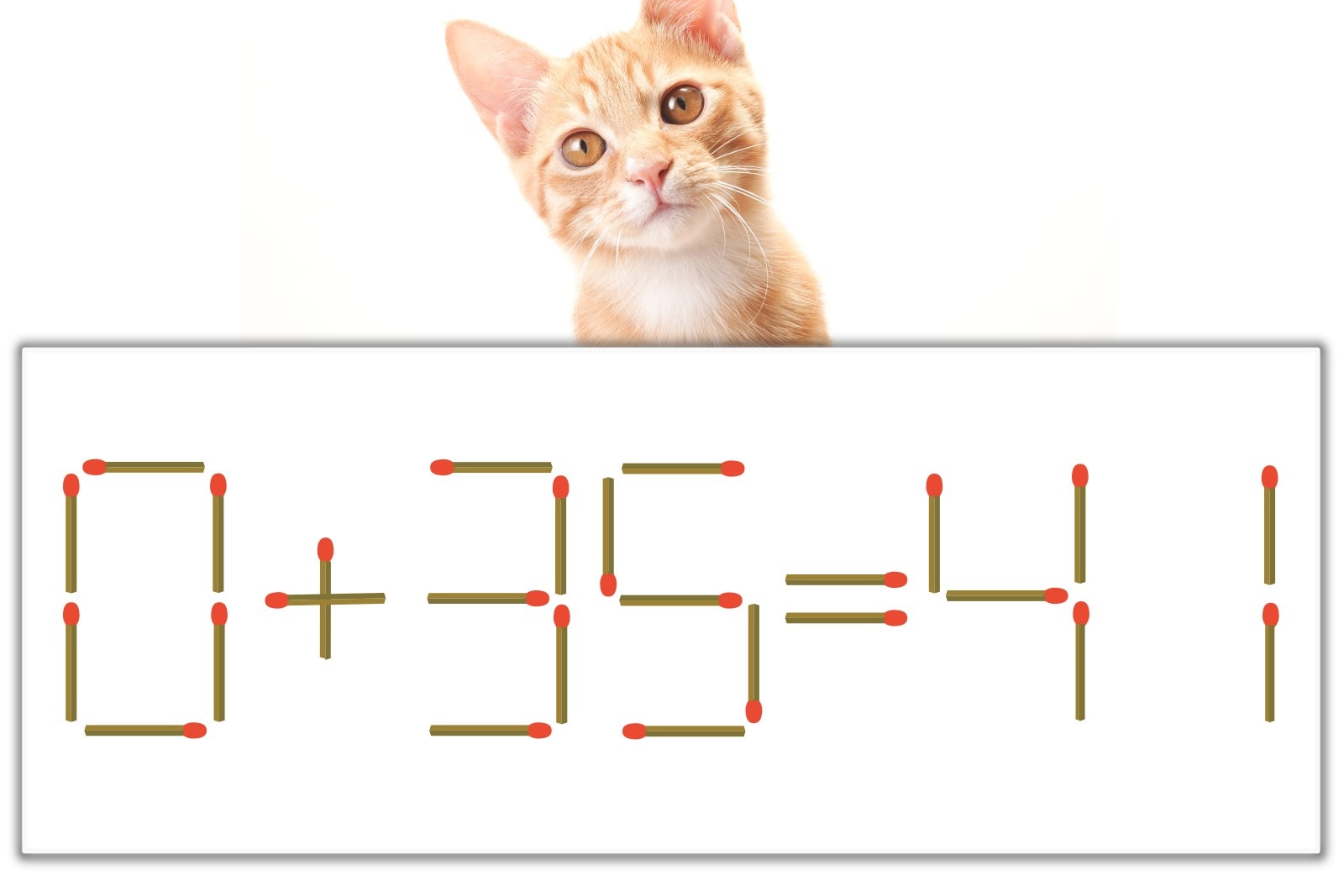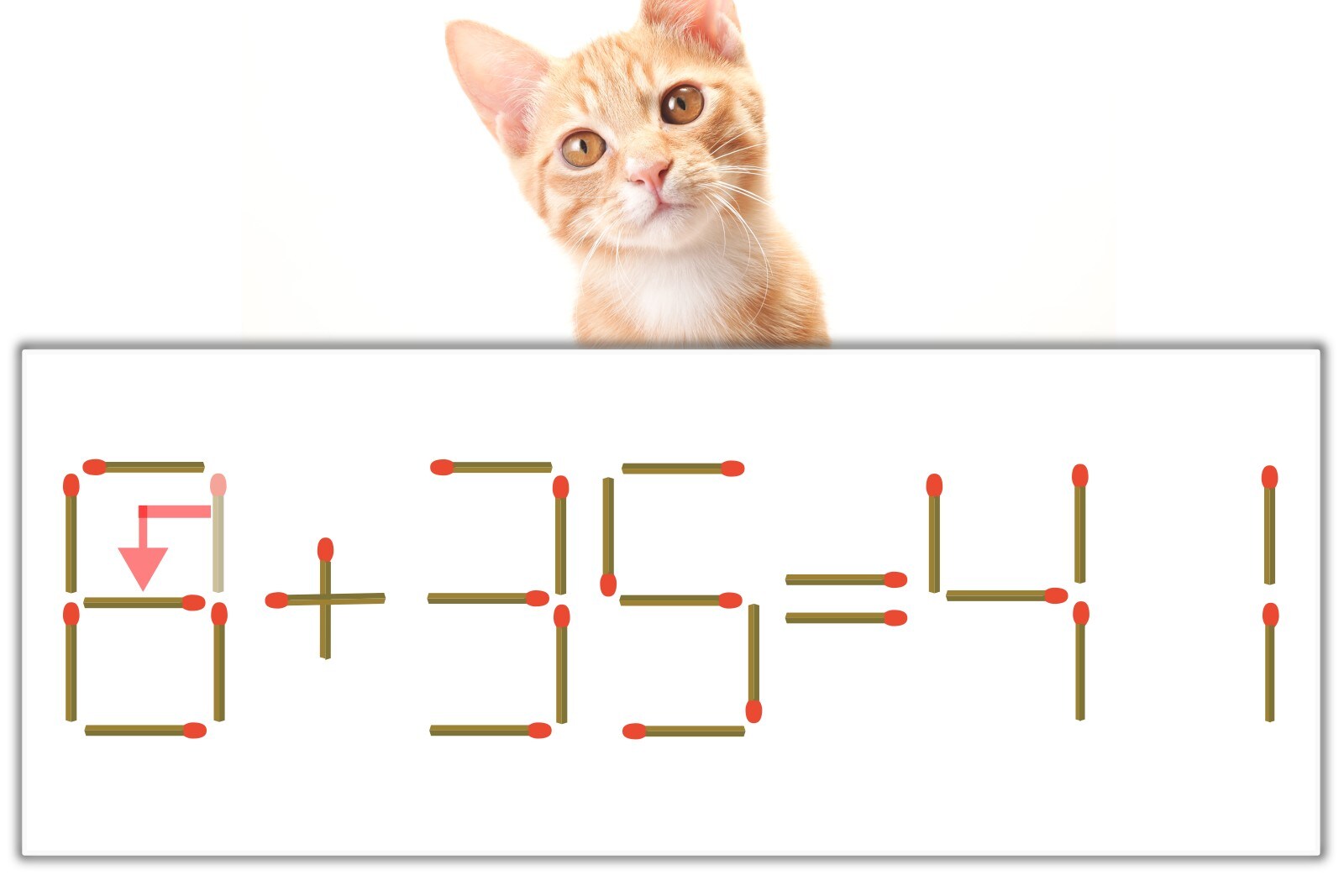「0」のマッチ棒を1本、左下にスライドさせて「6」を作り、「6+35=41」にする。※解答は複数ある場合があります。