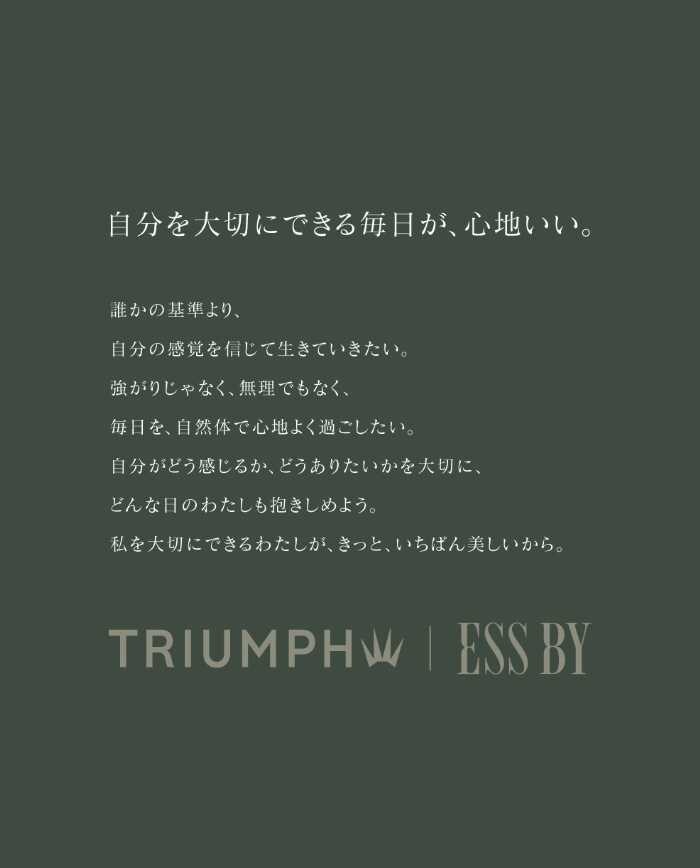 “自分を大切にすること”をテーマにした新しいランジェリーが誕生。トリンプとESS BYが手を組み、心地よさと美しさを両立したコレクションを展開します。装飾に頼らず、素材やシルエットの本質を追求したアイテムは、日常にそっと寄り添いながら女性の魅力を引き出してくれる存在に。自分のために選ぶランジェリーで、毎日をもっと前向きに過ごしてみませんか♪