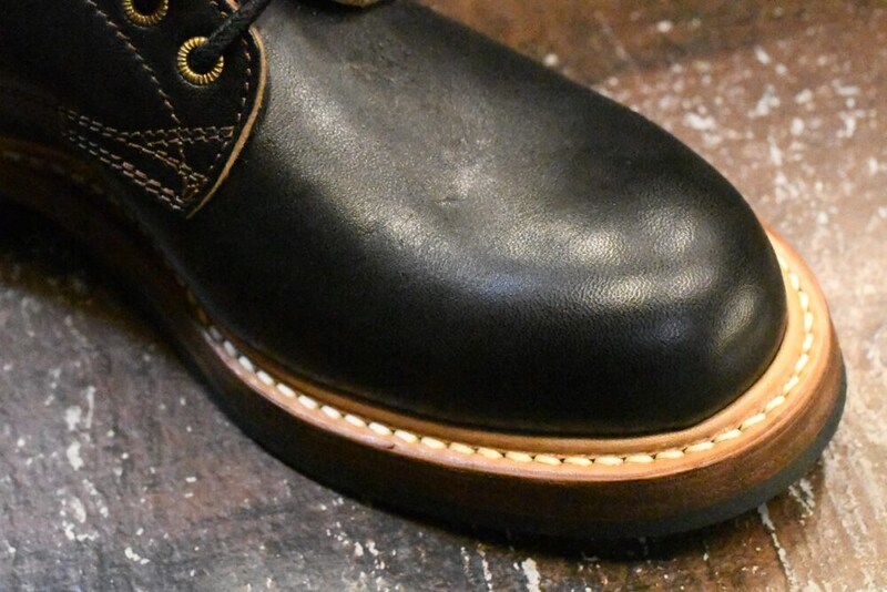 もう1足は昨年から取り扱いが始まったWEST RIDE。今回初めてブーツが入荷し、スタッフもイチオシの1足だ。アッパーにはベジタブルタンニン鞣しのホースバットレザーを使用。無骨ながらシュッとした見た目がかっこいい。更にEワイズなので足入れもしやすい。外バネにはリベットではなくあえて三角ステッチで補強している。驚きなのがこの見ためにして驚きの軽量性。重たいブーツに疲れたけど、やっぱりブーツが好きだという方にもぴったりだ。