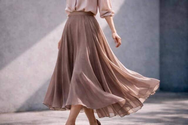 次に注目したいのが、レーヨンやとろみ系の落ち感素材。体のラインに沿って自然に流れるため、シルエットに軽やかさが生まれます。シャツやスカートに取り入れると、動いたときの揺れ感が春らしい印象を引き立てます。