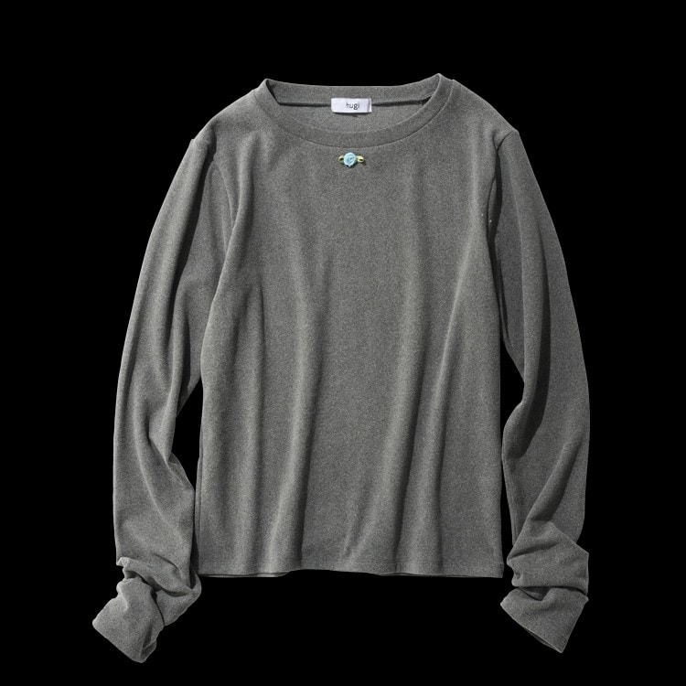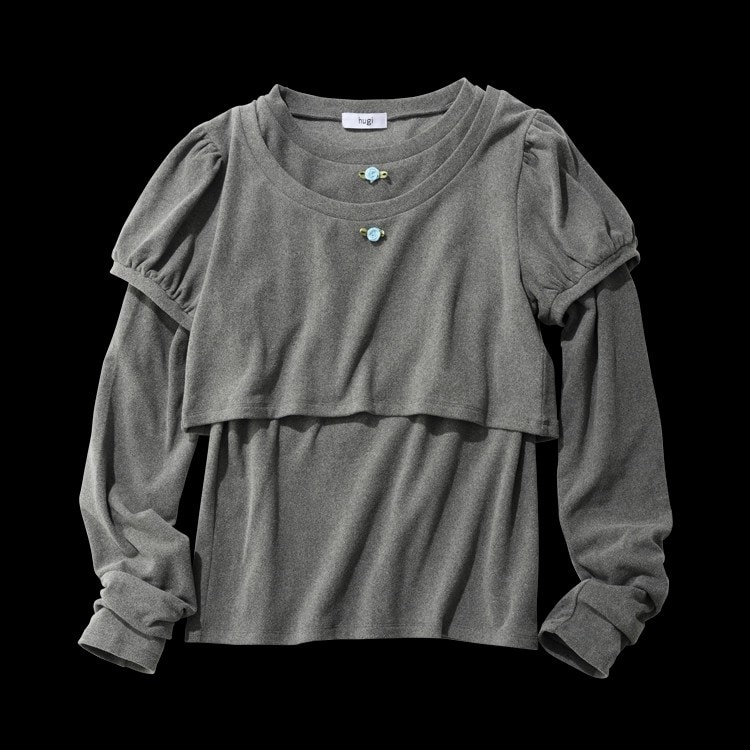 肌寒い日から、ポカポカ陽気の日まで対応できるフリース素材のレイヤードトップス。長短それぞれで使えるのも心強い。