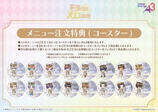 ■コラボメニューを含むセットメニューをご注文の方には、コースターを3枚ランダムで配布
