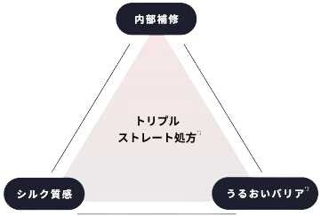 本シリーズは、髪内部の構造の乱れに着目したトリプルストレート処方を採用。必須アミノ酸*1やジマレイン酸*2、7種のケラチン*3を配合し、ダメージを内側から補修します。