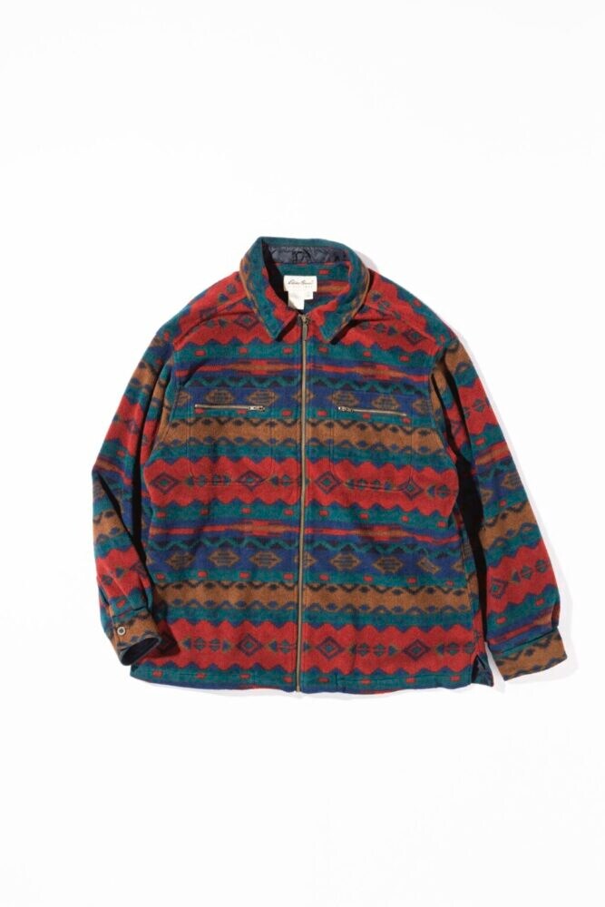 ネイティブボーダー柄フリースにナイロン裏地が付き、しっかりしたシャツジャケットタイプ。13,200円(maarTel.03-6383-2152)