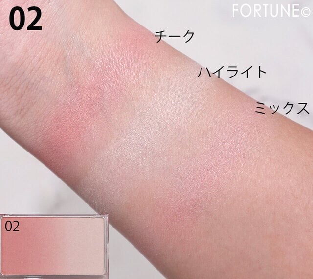 チークとハイライトがグラデーションになっており、色とツヤを混ぜることで、ふんわりと肌になじむのが特徴です。