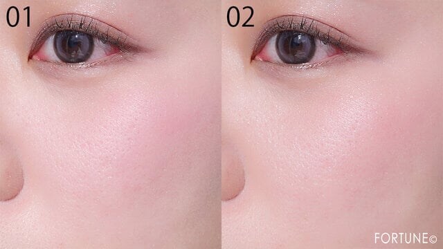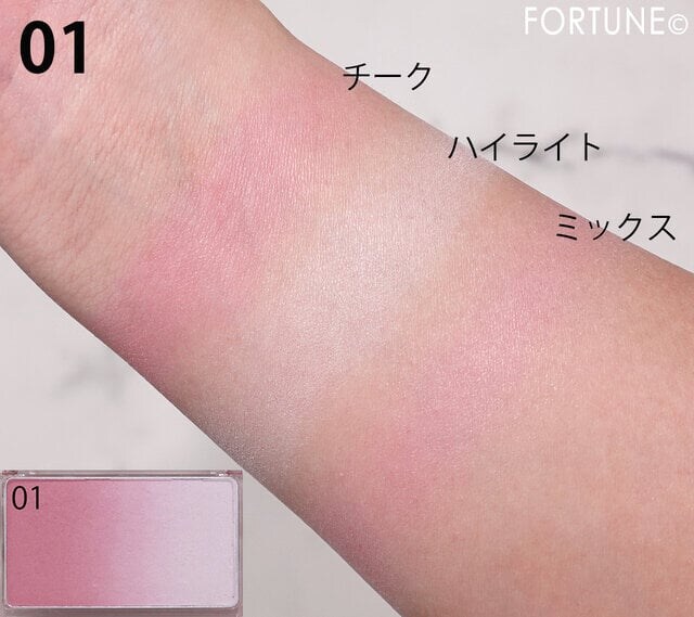 「01」は、透明感たっぷりの青みピンク。ひと塗りで顔色がパッと明るく見えます。