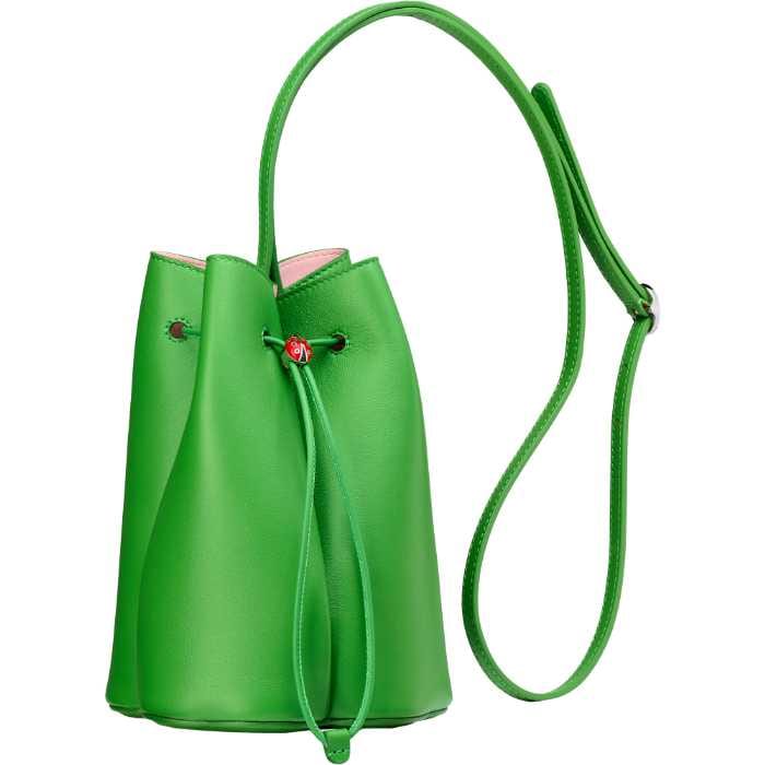 ドローストリングにはテントウムシやミツバチの装飾が施され、細部まで遊び心たっぷり。内側は配色のコントラストが美しく、開けた瞬間にもときめきを感じられます。