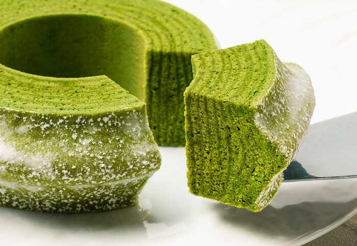 長時間じっくり焼き上げることで、外は香ばしく中はしっとりとした食感に仕上がり、抹茶の深い香りとコクが口いっぱいに広がります。