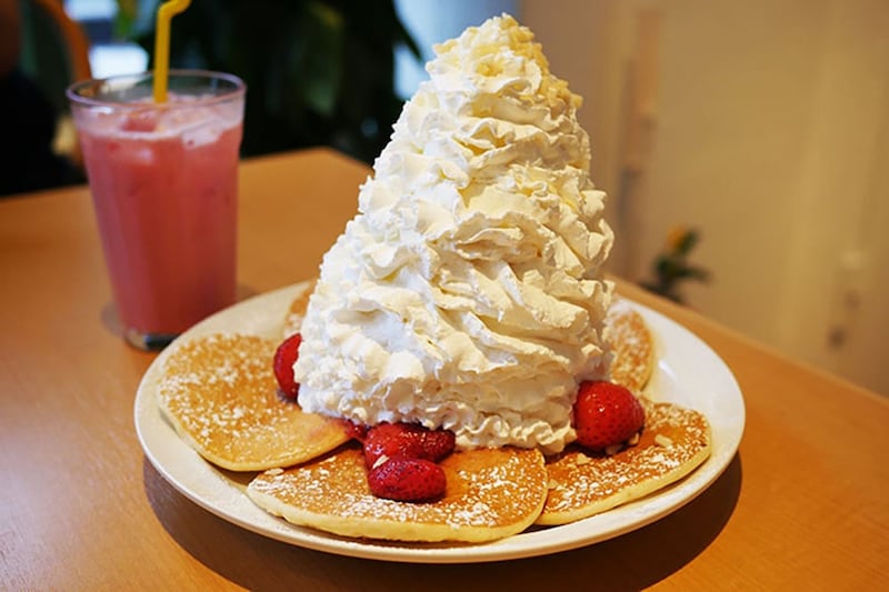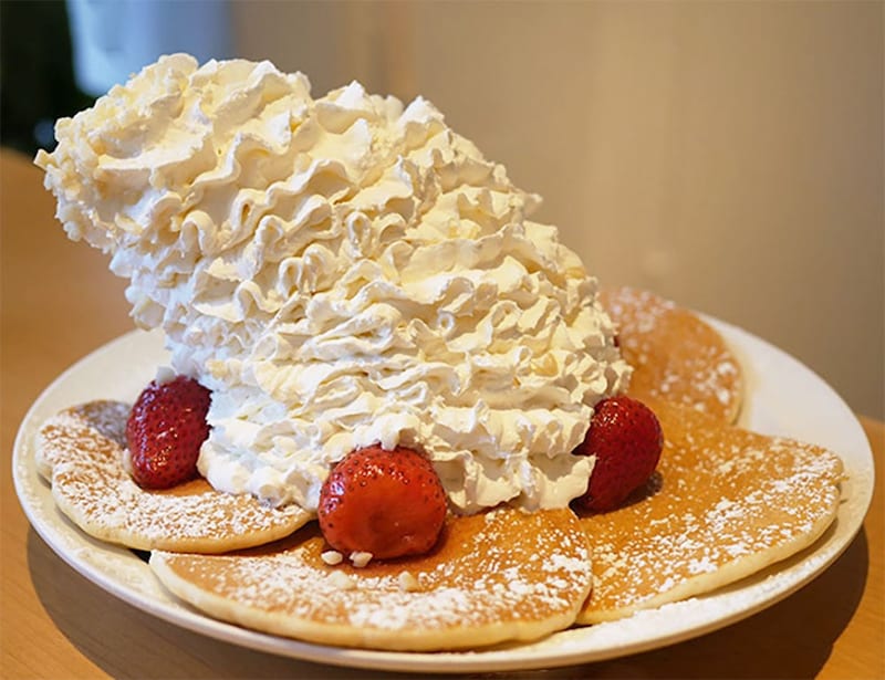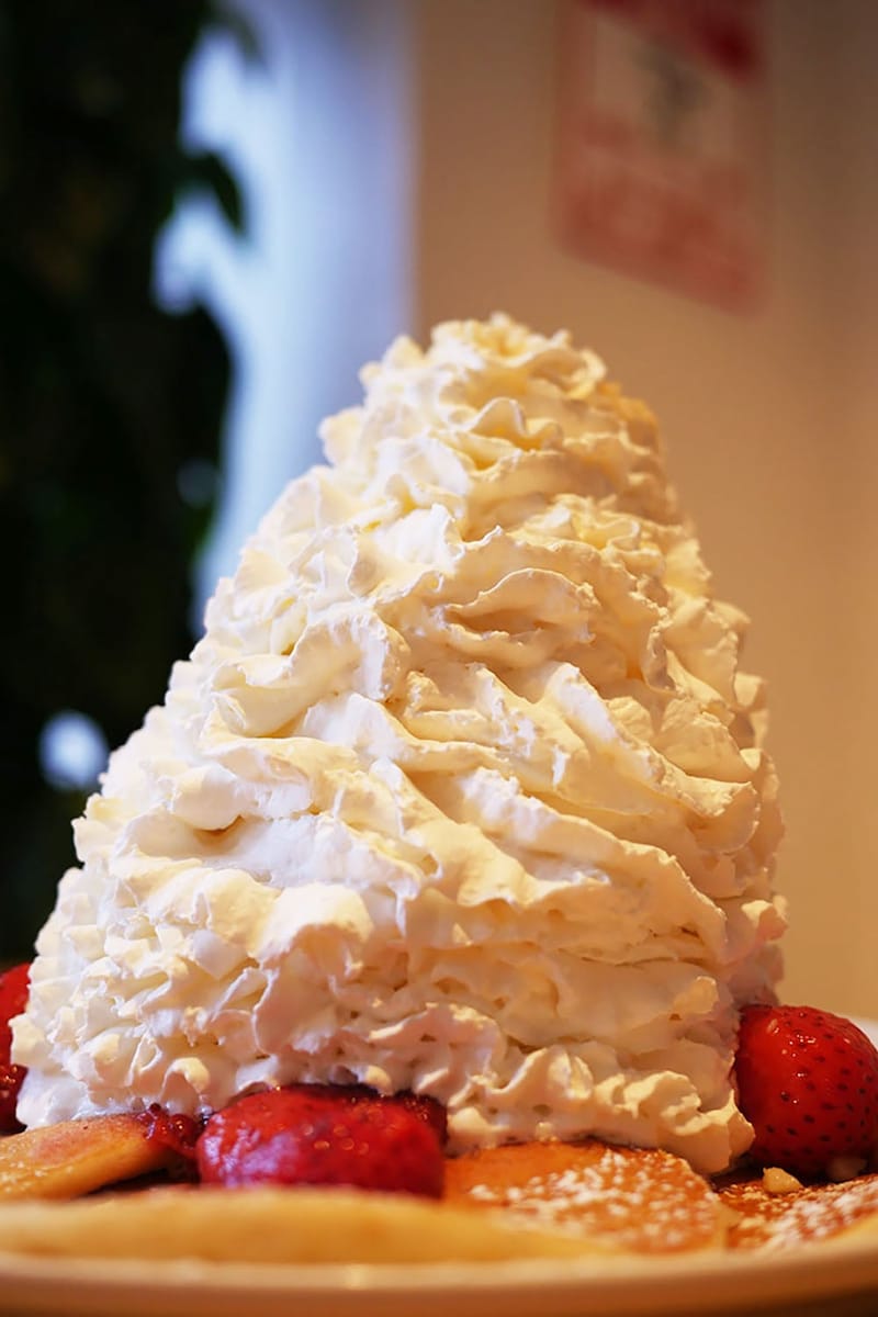 実はここ、一部の人たちから「女のラーメン二郎」と言われている。パンケーキが美味しいおしゃれなスイーツ店として知られているエッグスンシングスだが、どうして女のラーメン二郎なのか? それは、ホイップクリームをマシマシにできるから!