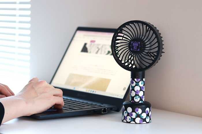 卓上でも持ち運びでも使えるスタンドタイプのハンディファンは、日常使いにぴったりの万能アイテム。コードレス仕様なので、オフィスや自宅はもちろん、外出先でも快適に使用できます。