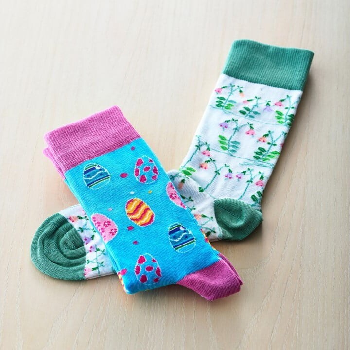 「スヴェンスク・フスマン」のソックス(22.5~25cm、25.5~28cm)(左)「イースターカラフルエッグ」(1,870円)、(右)「スティグ・リンドベリ・リネア」(2,200円)