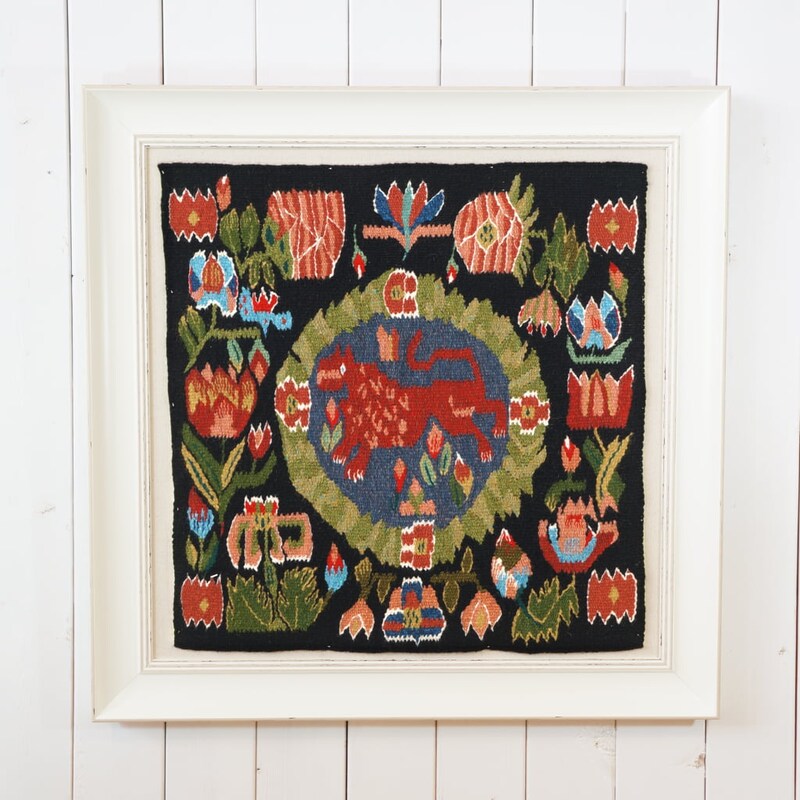 「ライオンと花(フレミッシュ織りの壁掛け)」(額入/112,200円)※現品限り