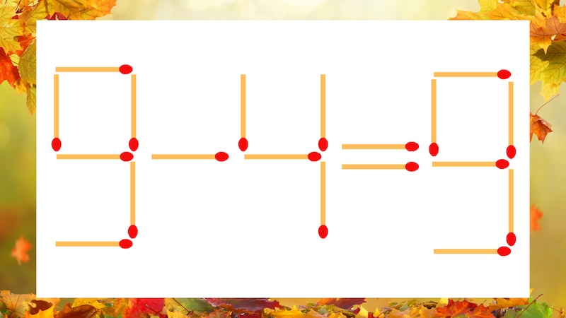 ▶ 【マッチ棒クイズ】1本だけ動かして正しい式に:9−4=9?